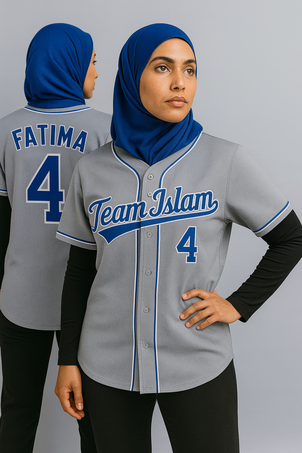 Muslim Heroes Edition Gray Royal-White Classic Style Authentic Baseball Jersey