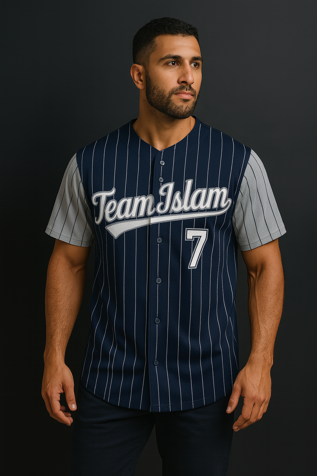 Muslim Heroes Edition Navy White-Gray Stripe Fashion Raglan Sleeves Authentic Baseball Jersey